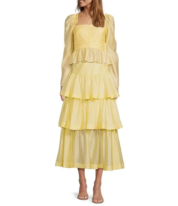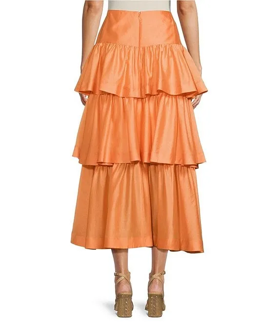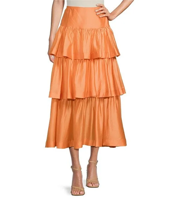 Antonio Melani Elvira High Rise Tiered Coordinating A-Line Midi Skirt