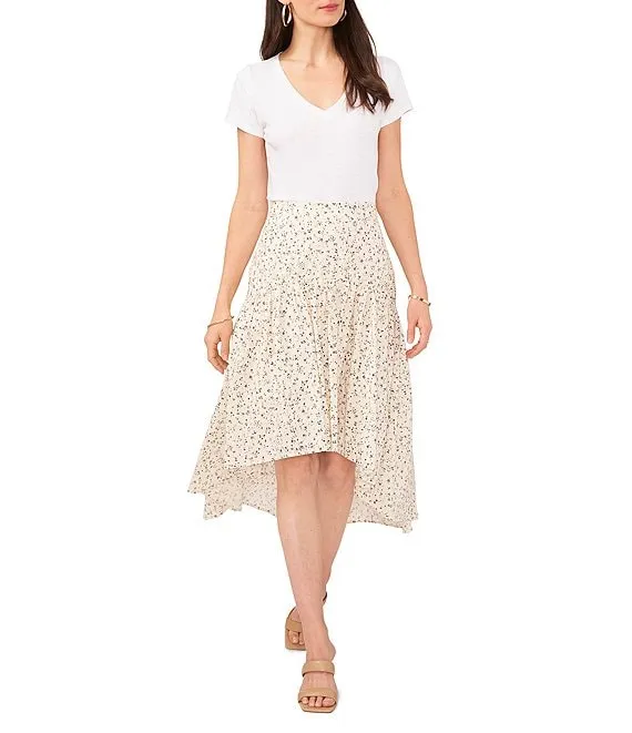 Floral Print Ruffled High-Low Hem Skirt