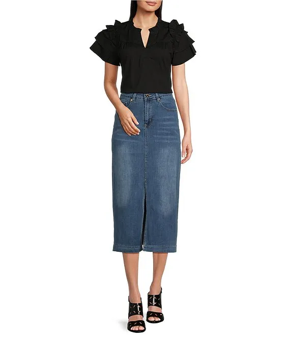 Front Slit Midi Denim Skirt