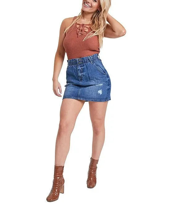 YMI Jeanswear High Rise Paper Bag Waistband Denim Skirt