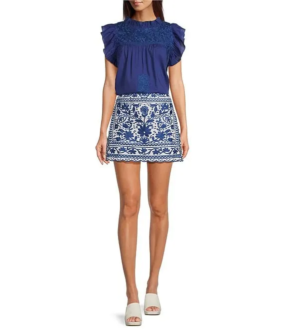 Laken Floral Embroidered Mini Pencil Skirt