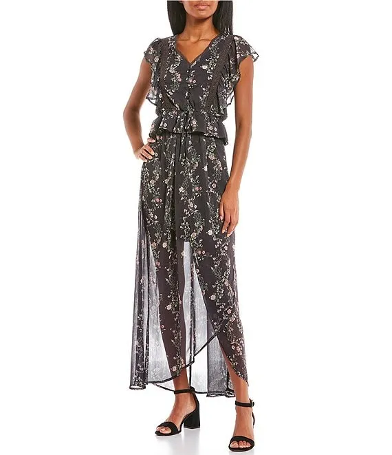 Mid Rise Coordinating Floral Print Maxi Wrap Skirt