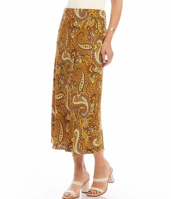 Karen Kane Bias Cut Midi Skirt Stay cool and chic in warmer weather with this skirt that is made entirely of soft viscose. The subtle sheen of the fabric adds an extra layer of sophistication, making it an ideal choice for special occasions or elevating your everyday style.