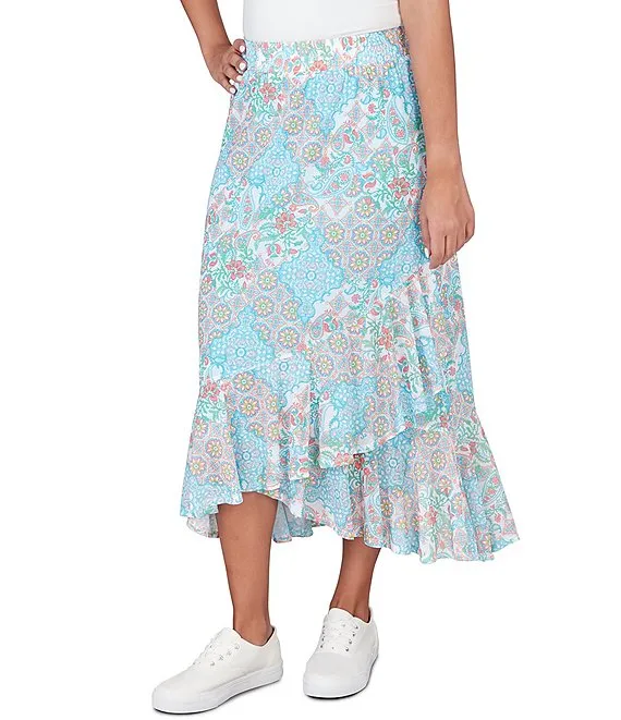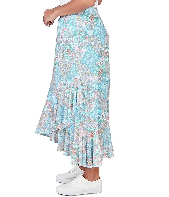 Paisley Tile Print Ruffle Hem Pull-On Skirt