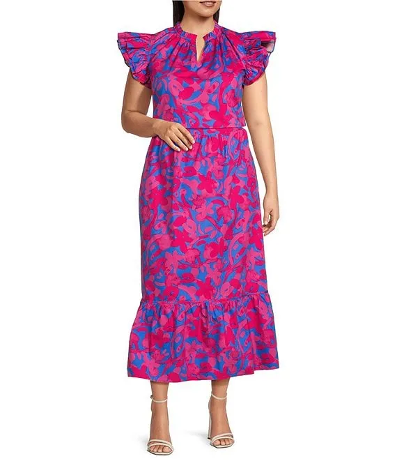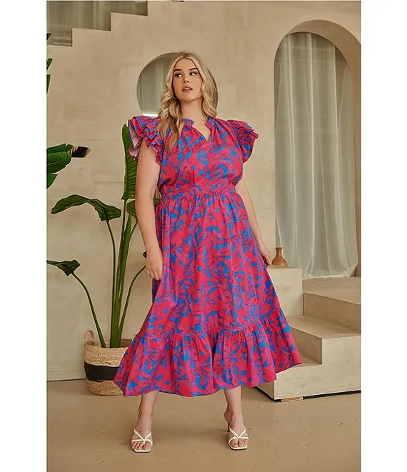 Plus Size Poplin Berry Tatchi Yeraldi Ruddle Coordinating Midi Skirt