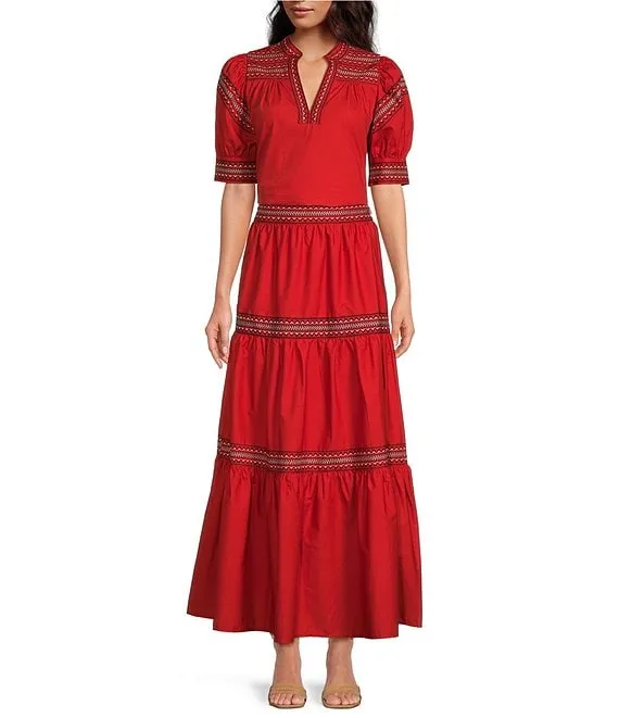 A Loves A Poplin Embroidered Trim Tiered A-Line Coordinating Maxi Skirt