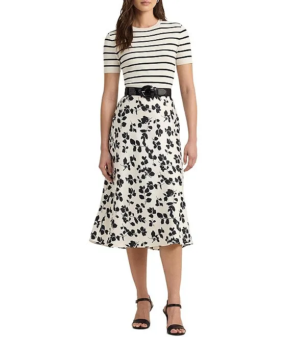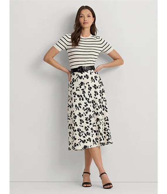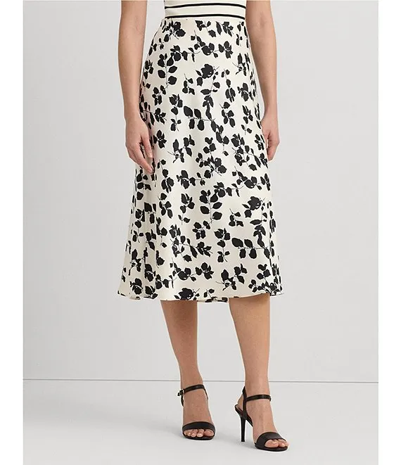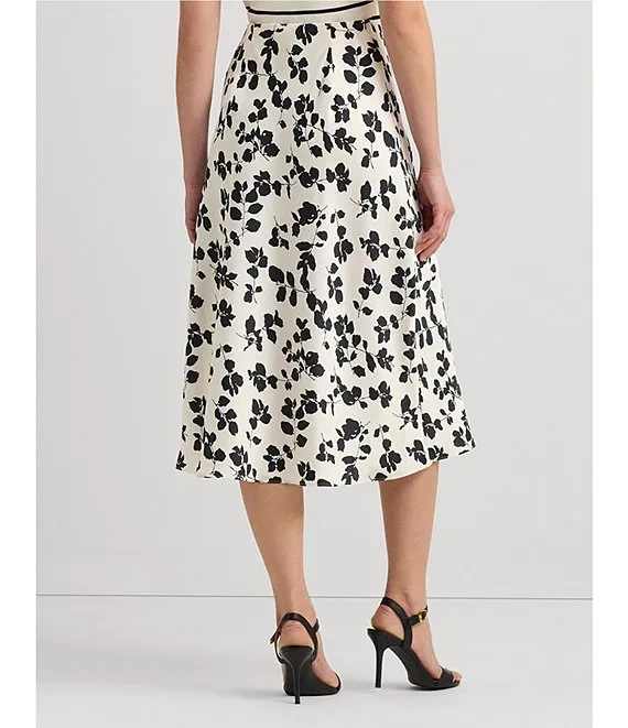 Lauren Ralph Lauren Sharae Satin Charmeuse Printed A-Line Midi Skirt