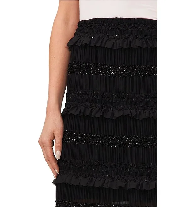Smocked Chiffon Ruffle Tiered Side Slit Midi Pencil Skirt