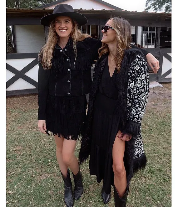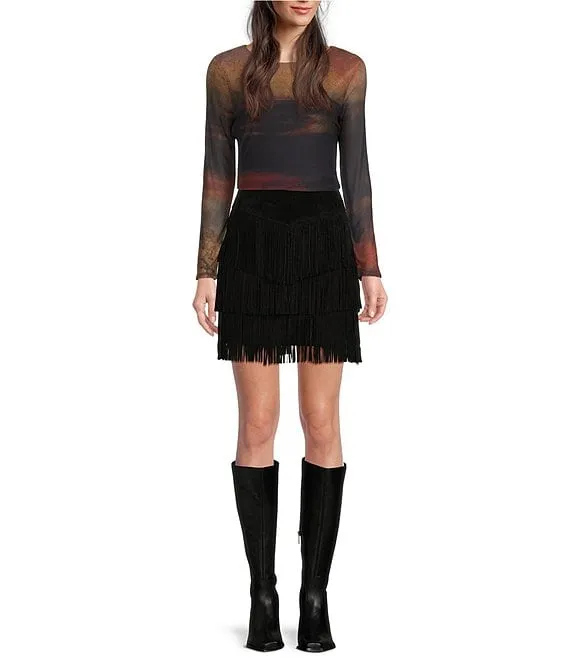 Tiered Suede Fringe Skirt
