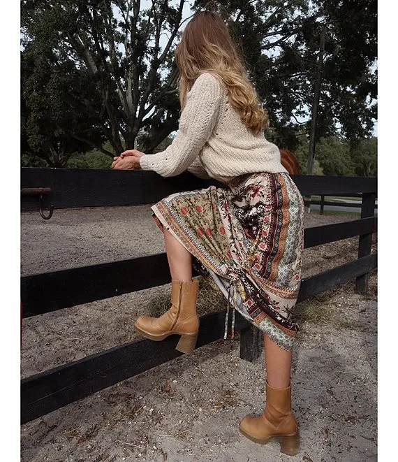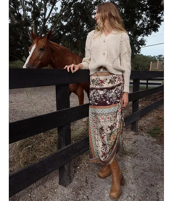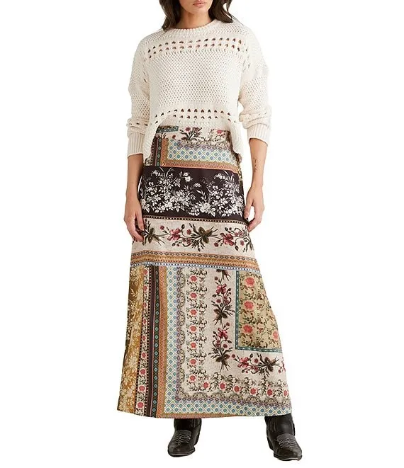Trixie Crepe Shift Side Adjustable Drawstring Tapestry Print Maxi Skirt