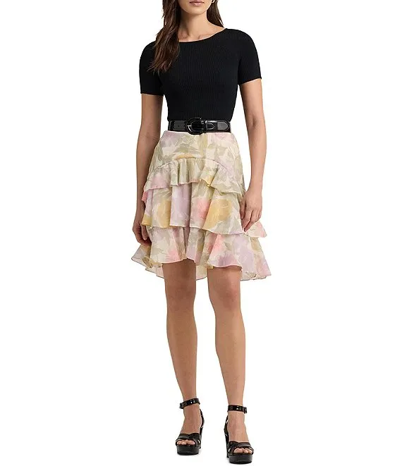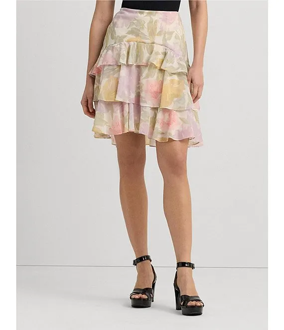 Lauren Ralph Lauren Wirjadi Floral Tired Above The Knee A-Line Skirt