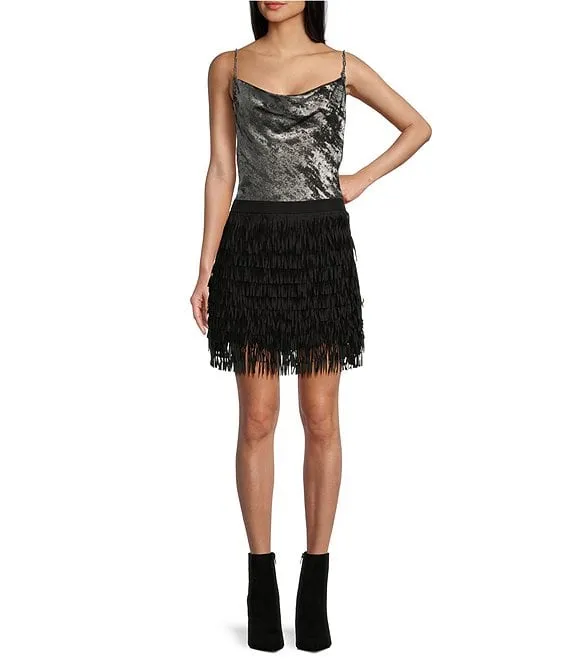 Guess Yuzi Mid Rise Layered Fringe Skirt