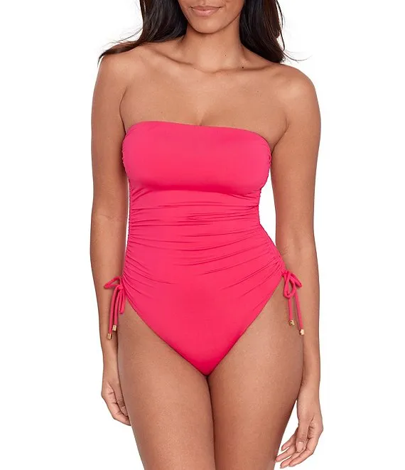 Lauren Ralph Lauren Beach Club Solids Ruched Side Tie Strapless One Piece Swimsuit