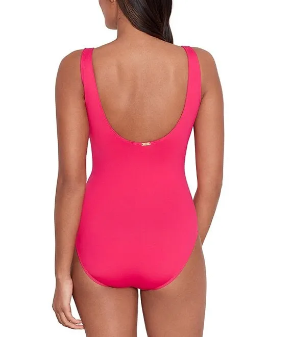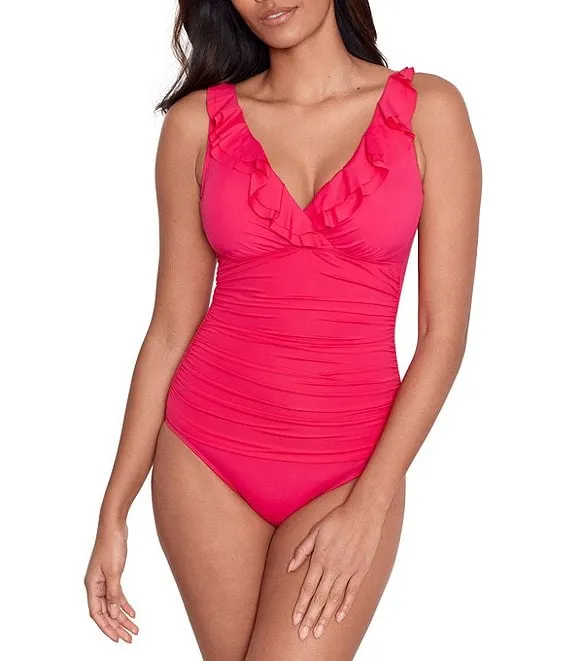 Lauren Ralph Lauren Beach Club Solids Underwire Ruffle Surplice V-Neck One Piece Swimsuit