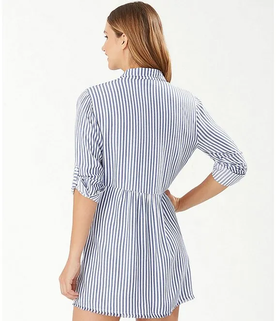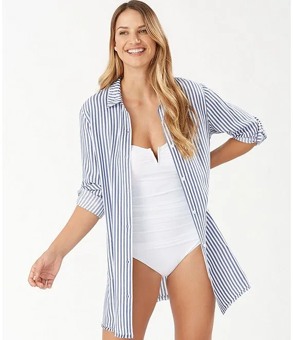 Chambray Stripe Boyfriend Shirt Swim Cover-Up
