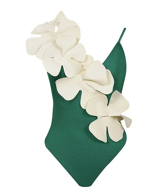 Guayacan Colorblock Large Flower One Piece Swimsuit
