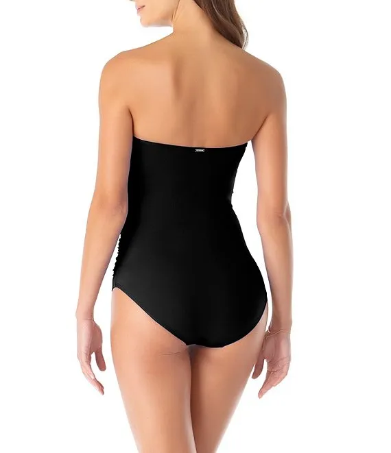 Live In Color Twist Front Shirred Bandeau Removable Strap One Piece Swimsuit