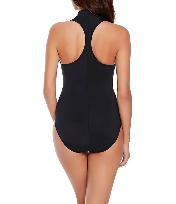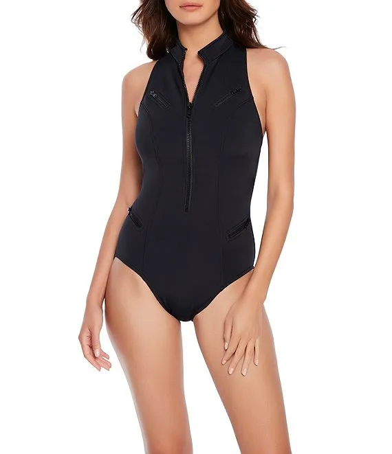 Scuba Coco Zip Front High Neck Underwire One Piece Swimsuit