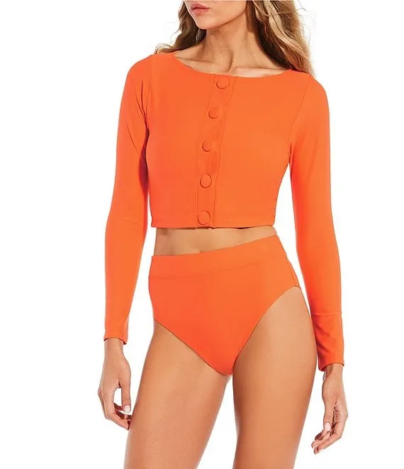 Antonio Melani Solid Cropped Button Front Swim Cardigan
