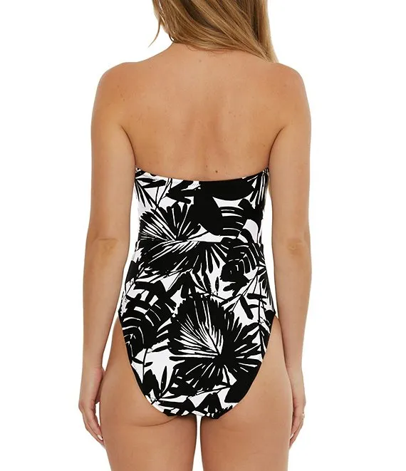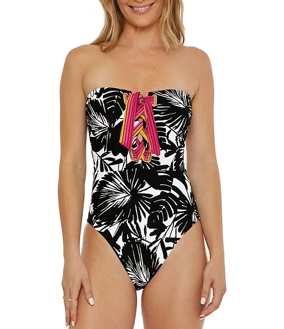 Lennox Leaf Print Bandeau Lace-Up One Piece Swimsuit