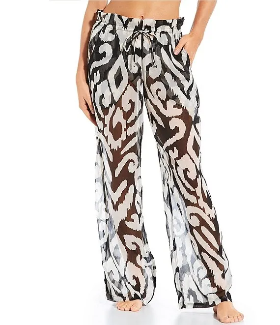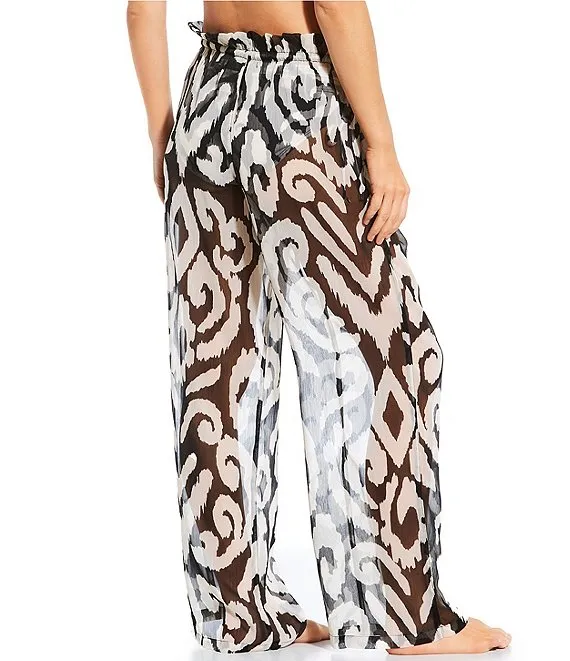 Batik Print Drawstring Tie High Waist Pant Swim Cover Up