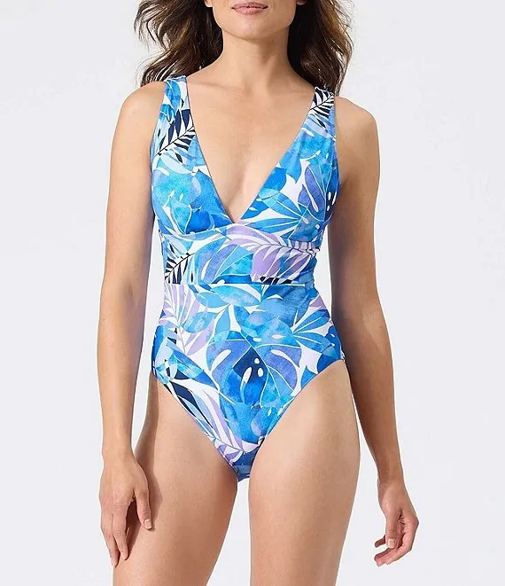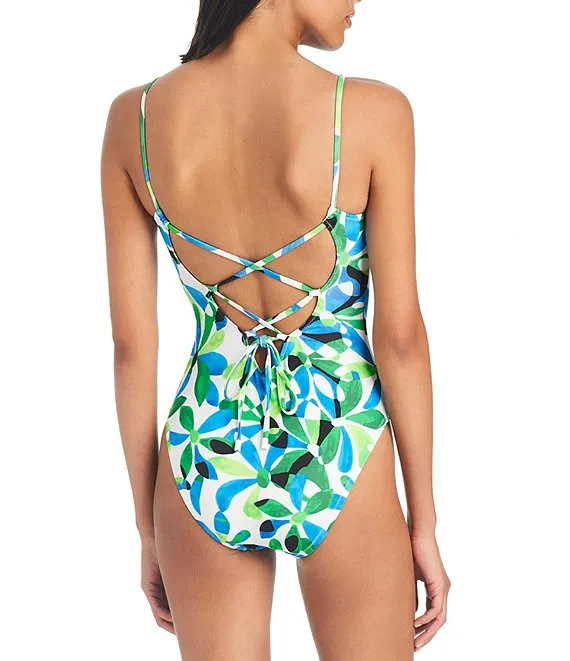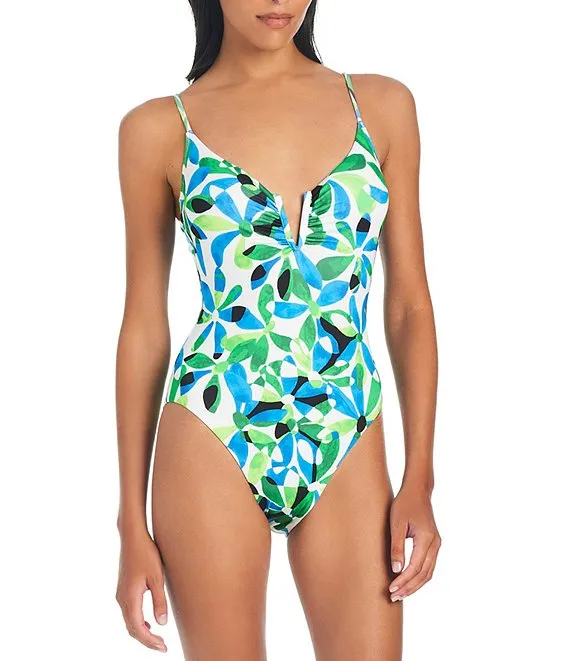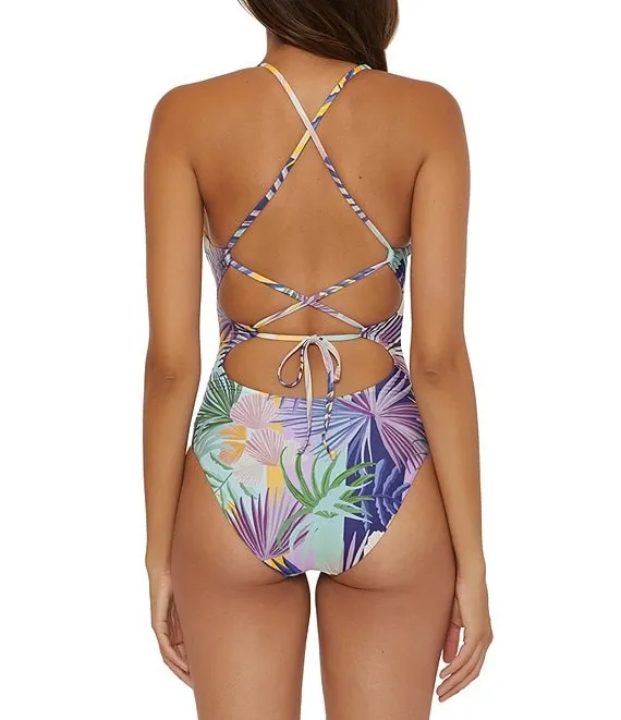Becca by Rebecca Virtue Under The Sea Botanical Print Haley Plunge V-Neck Multi-Strap One Piece Swimsuit