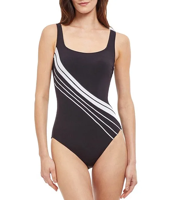 Simple Elegance Square Neck Tummy Control One Piece Swimsuit