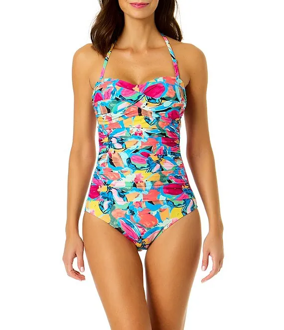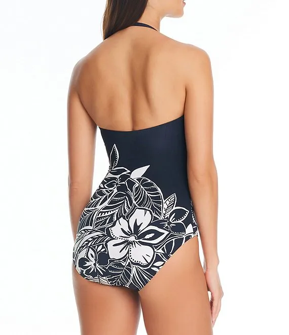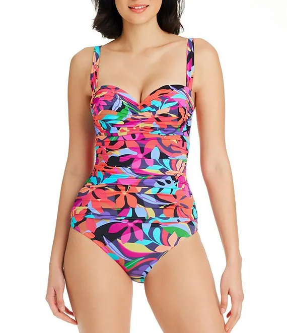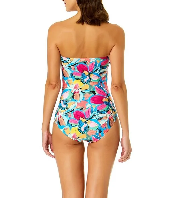 Amalfi Floral Print Twist Front Bandeau One Piece Swimsuit