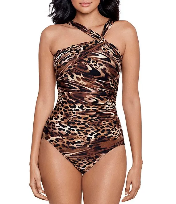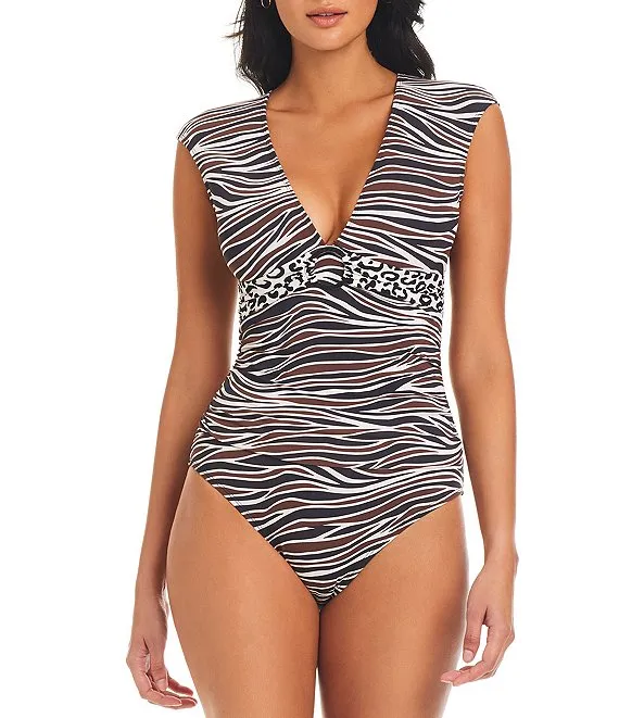 MICHAEL Michael Kors Tiger Print Logo Trim Surplice One Piece Swimsuit