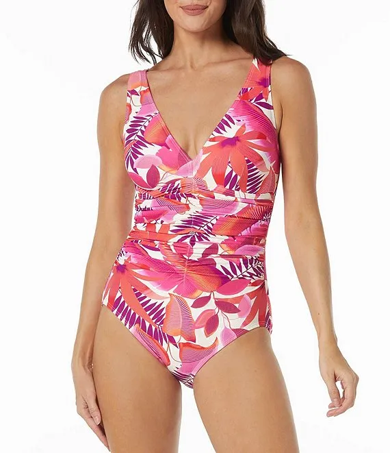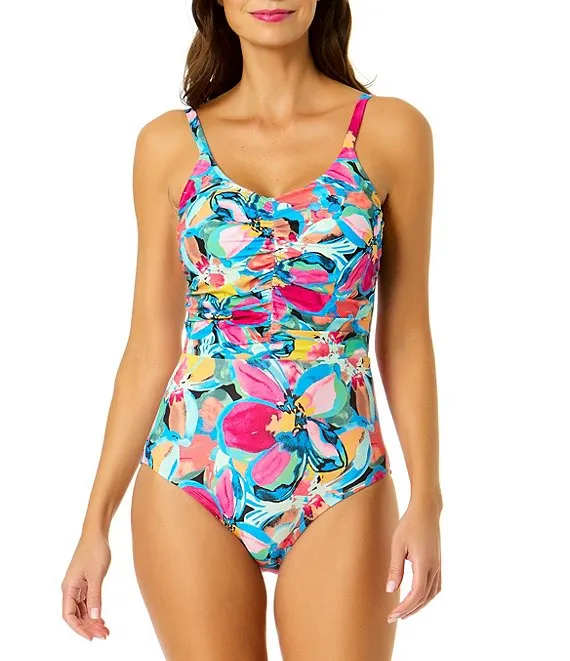 Amalfi Floral Print V-Neck Front Shirred One Piece Swimsuit
