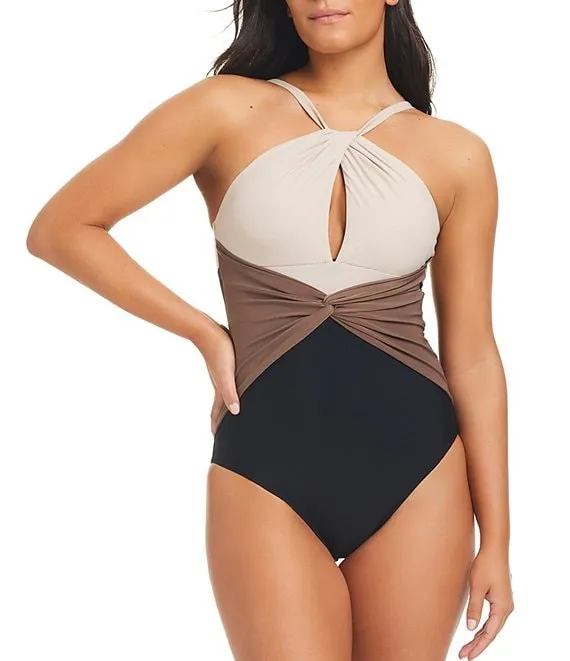 Bleu Rod Beattie Don't Mesh With Me Solid High Neck One Piece Swimsuit