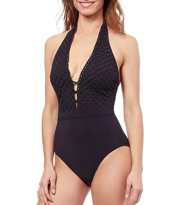 Rendez-Vous Halter Plunge V-Neck Tummy Control One Piece Swimsuit