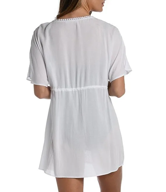 Laser Cut Crew Neck Cover-Up Dress