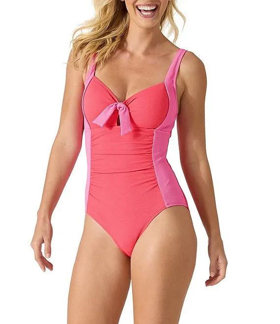 Island Cays Color Blocked Tie One Piece Swimsuit