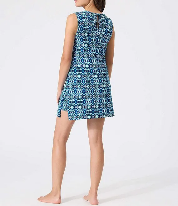 Island Cays Ikat Split V-Neck Sleeveless Swim Cover Up Romper