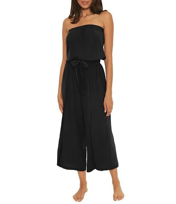 Becca by Rebecca Virtue Ponza Elastic Tube Neckline Wide Leg Jumpsuit Cover-Up