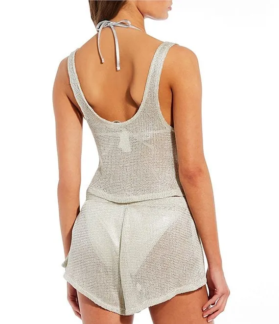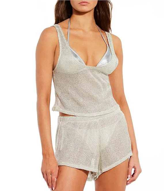 Lurex Knit Crop Tank Top Swimsuit Cover Up