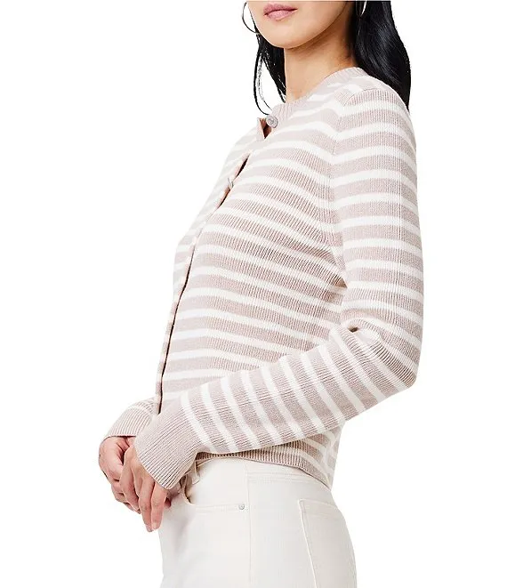 9 To 5 Knit Striped Crew Neck Long Sleeve Button Front Cardigan