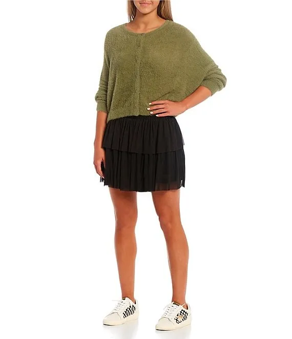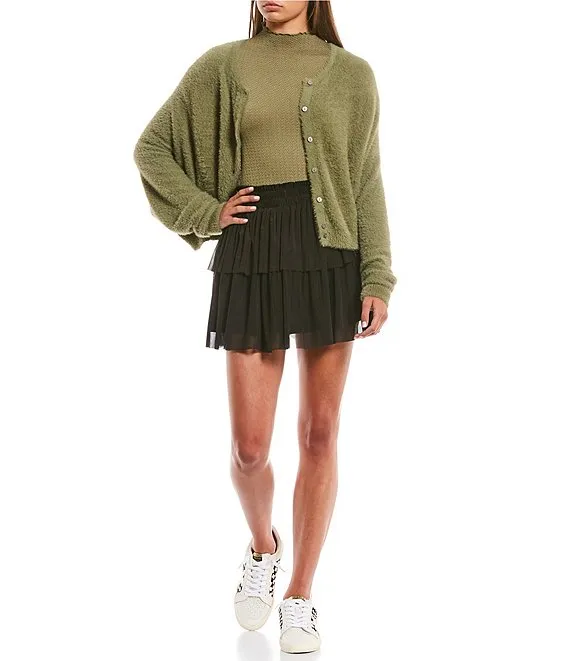 Bat Sleeve Button Front Cardigan