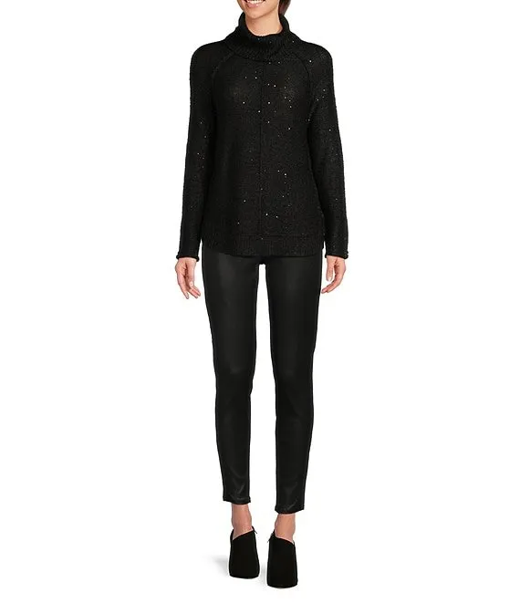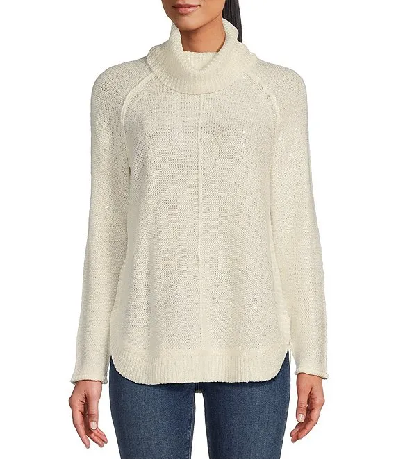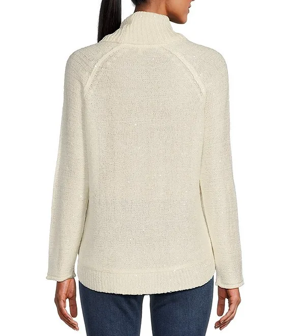 Catalina Draped Turtleneck Raglan Sleeve Sequin Sweater