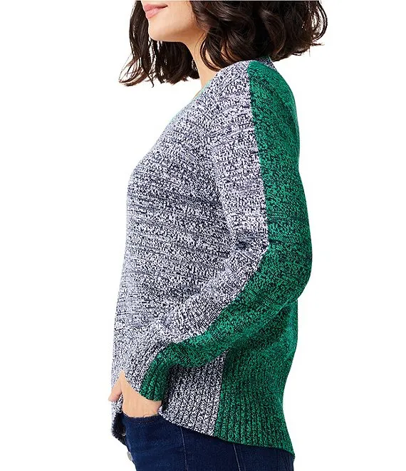 • Midweight color block mix sweater fabrication