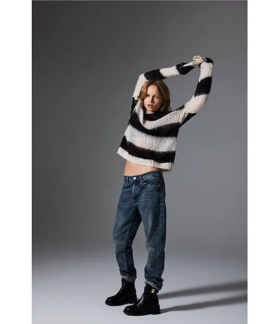 Elson Oversized Stripe Print Crew Neck Long Sleeve Sweater