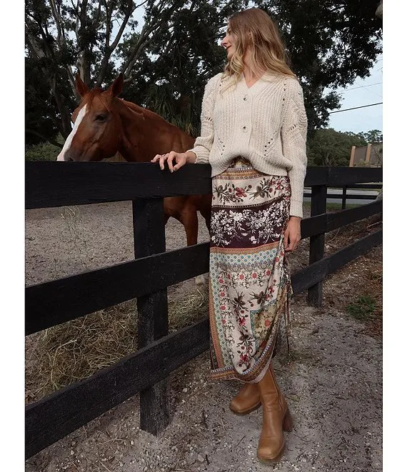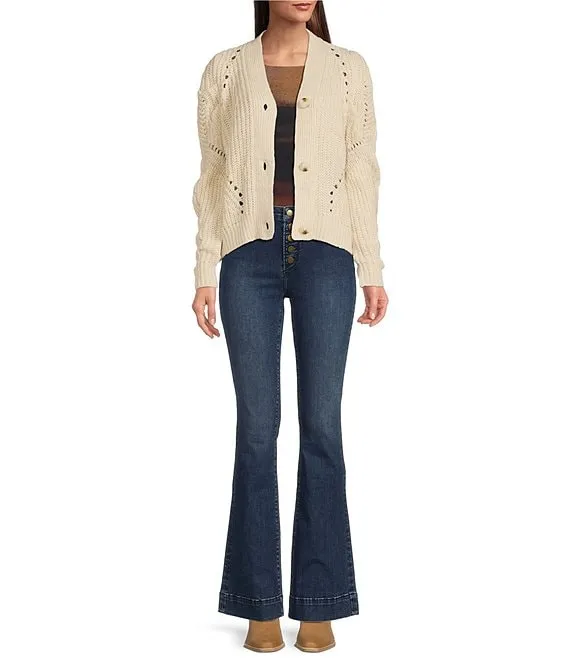 Emie Balloon Sleeve Button V-Neck Front Cardigan