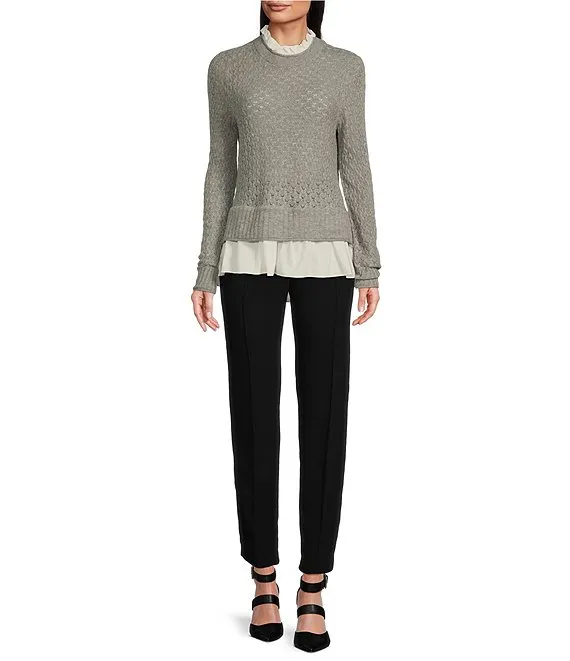 - Mixed-media sweater knit and sheer woven fabrication