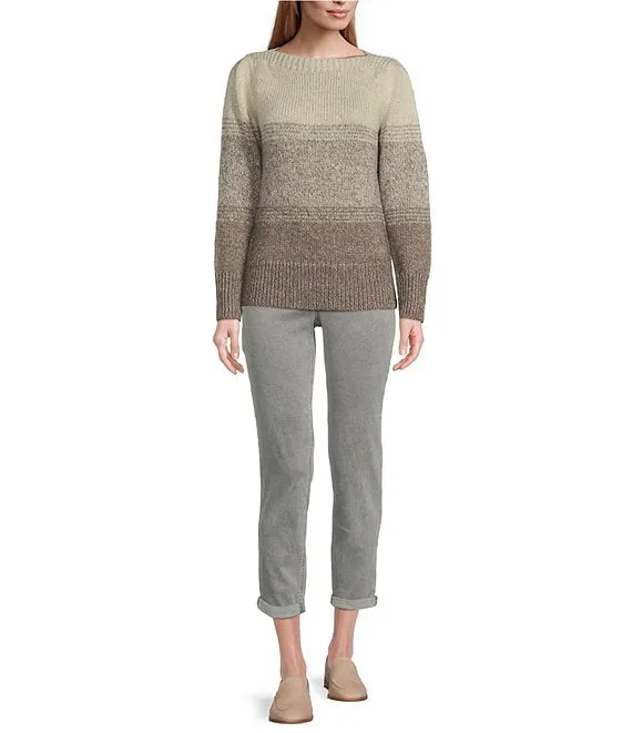 Metallic Knit Shimmer Ombre Wool Blend Boat Neck Long Puff Sleeve Sweater