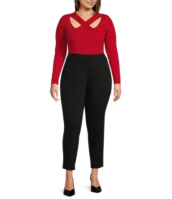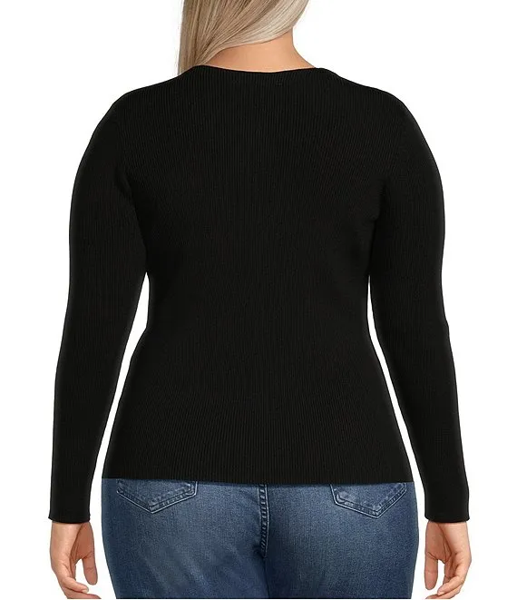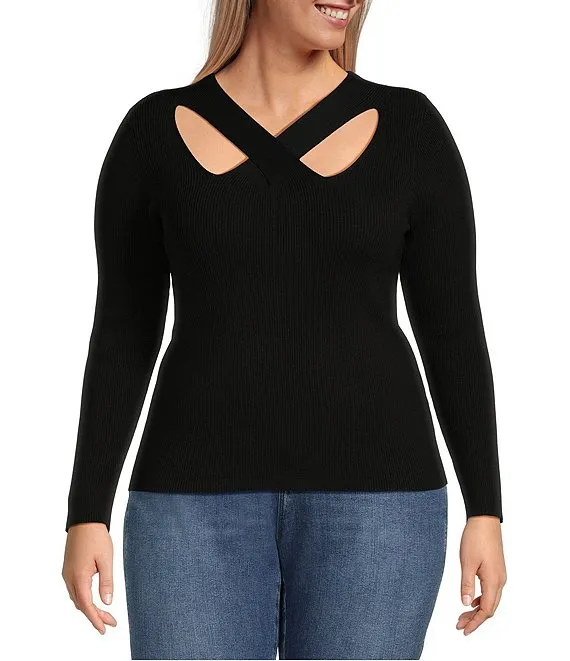 • MICHAEL Michael Kors Plus Size Fine Gauge Criss Cross V-Neck Long Sleeve Cut-Out Detail Sweater
