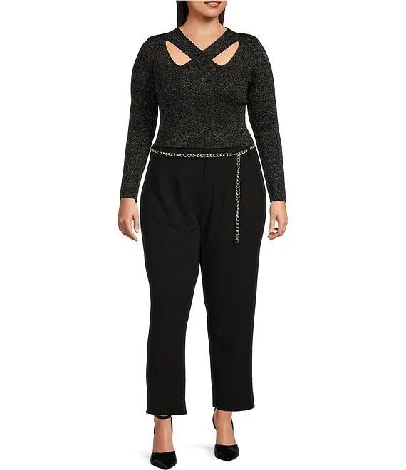 MICHAEL Michael Kors Plus Size Fine Gauge Metallic Criss Cross V-Neck Long Sleeve Cut-Out Detail Sweater
