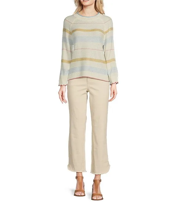 Multicolor Stripe Acrylic High Round Neck Long Sleeve Sweater