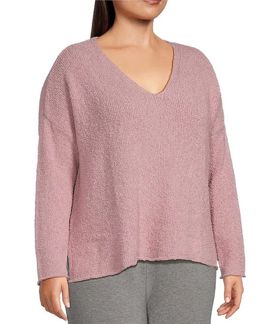 Plus Size Fine Gauge V-Neck Long Sleeve Boxy Sweater