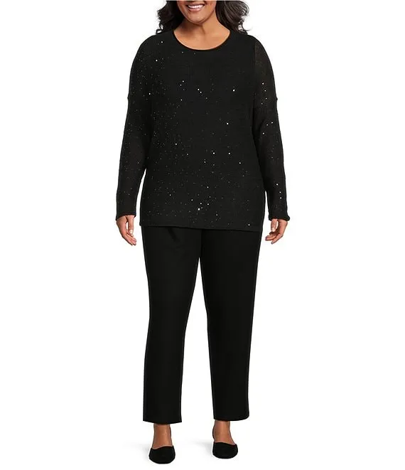 Plus Size Merino Wool Crew Neck Long Sleeve Boxy Sequin Sweater